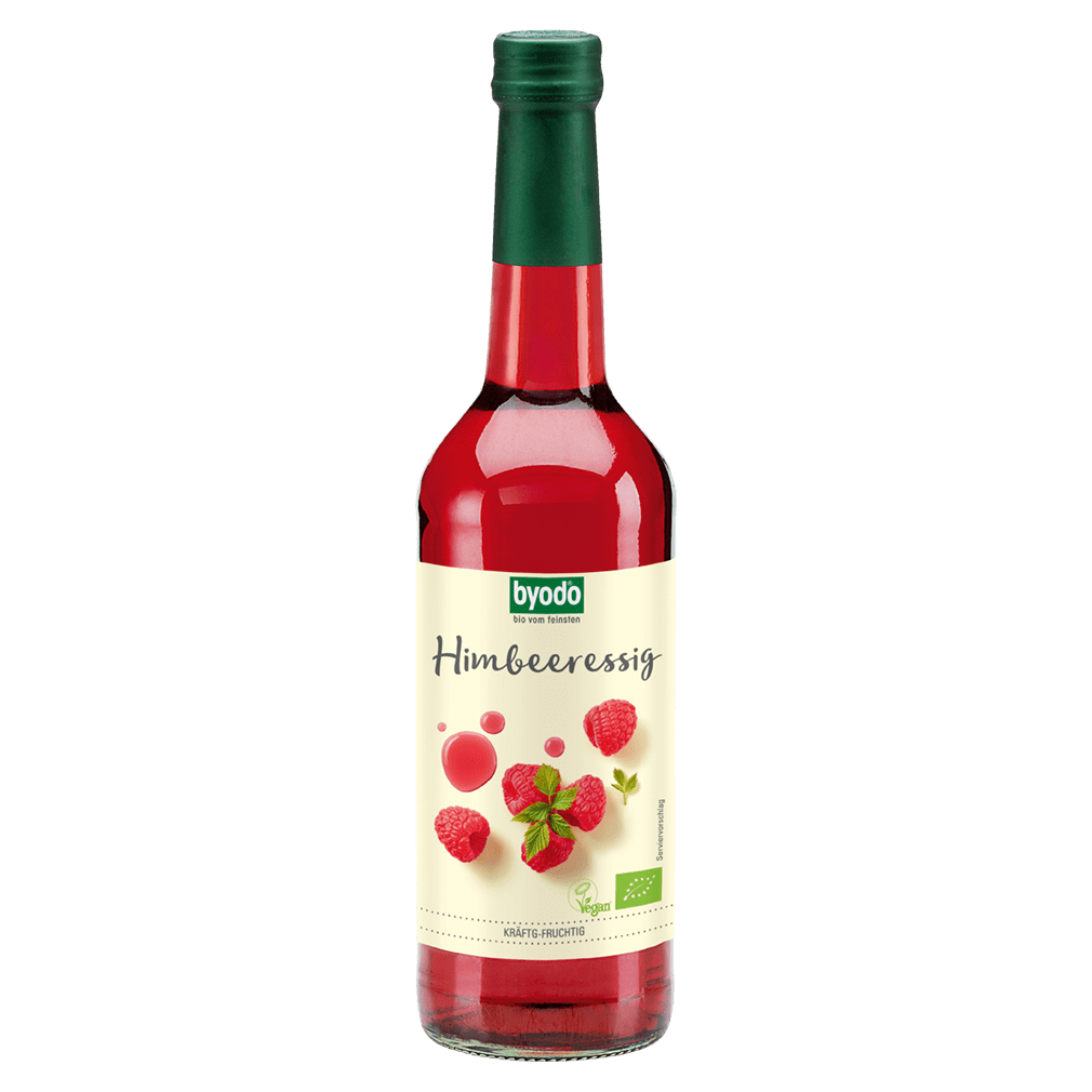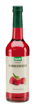 Die Gewinnung des ökologischen Byodo Essigs erfolgt grundsätzlich aus Alkohol, das heißt, abhängig von der Sorte aus Rotwein, Himbeerwein, Getreidealkohol, etc. Der Alkohol wird in groß angelegte Gärbehälter gefüllt und unter Einsatz von Essigbakterien sowie Sauerstoffzufuhr bei Temperaturen von etwa 25 °C allmählich zu Essig vergoren. Experten bezeichnen diesen Vorgang als fortlaufende Prozedur. Nach der Produktion durchläuft der Bio-Himbeeressig von Byodo lediglich eine Filtration, um seine ansprechende klare Farbe zu bewahren. Sämtliche Rohstoffe stammen zu 100% aus kontrolliert biologischem Anbau.