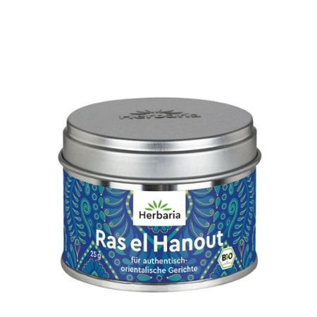 Die Herbaria Ras el Hanout Gewürzmischung in Bio-Qualität vereint eine edle Mischung aus aromatischen Gewürzen wie Koriander, Zimt, Kardamom und Muskat. Perfekt für Couscous, Tajines, Reisgerichte oder Schmorgerichte – diese Mischung verleiht deinen Speisen eine authentische, exotische Note.