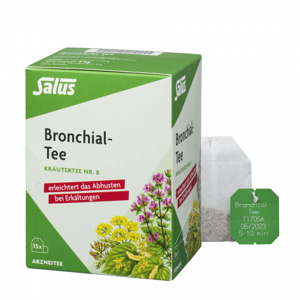 Wann solltest Du Salus Bronchial-Tee Nr. 8 trinken?Bei Erkältungen: Wenn Husten und Schleim in den Atemwegen festsitzen, hilft Dir dieser Tee, das Abhusten zu erleichtern und den Schleim zu lösen.
