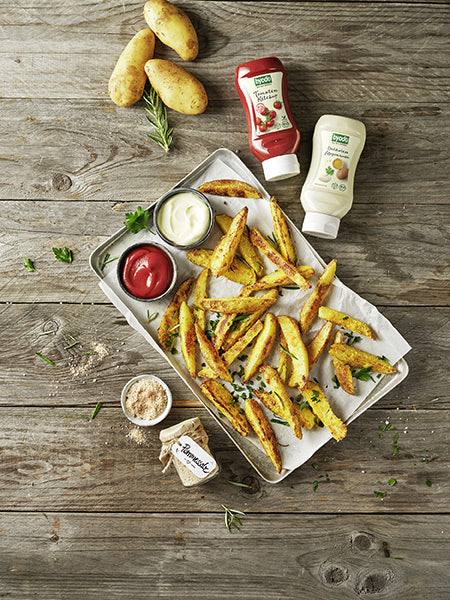 Der Bio-Ketchup von Byodo überzeugt mit seiner exquisiten Fruchtigkeit, basierend auf einem Anteil von 80% Tomatenmark, und harmoniert ausgezeichnet mit Gegrilltem, Pommes Frites und Würstchen. Mithilfe der handlichen Squeeze-Flasche kann der Ketchup bequem dosiert werden, ohne Kleckerei zu verursachen. Empfohlen wird die Lagerung im Kühlschrank nach dem Öffnen.