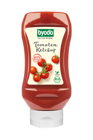 Anders als bei konventionellen Ketchups unterzieht Byodo die sonnengereiften, frisch geernteten Tomaten unmittelbar nach dem Waschen einer kurzen Dampfbehandlung im biologischen Ketchup. Diese Methode inaktiviert Enzyme und bewahrt gleichzeitig den fruchtigen Geschmack sowie die ansprechende rote Farbe.