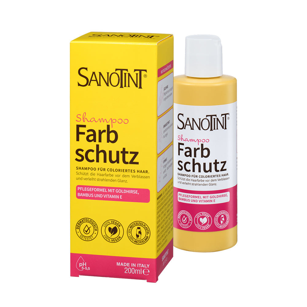 Verwöhnen Sie Ihr gefärbtes Haar mit dem Sanotint® Farbschutz-Shampoo und erleben Sie die transformative Wirkung der Goldhirse. Genießen Sie lang anhaltende Farbbrillanz und gesundes, gepflegtes Haar.