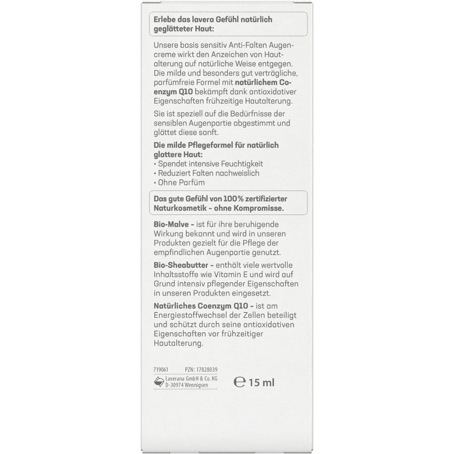 Morgens und abends rund um die Augen auftragen und sanft einklopfen. Besonders gut für die sensible Augenpartie geeignet. Für ein optimales Pflegeergebnis verwende auch die anderen Produkte unserer basis sensitiv Anti-Falten-Serie mit natürlichem Coenzym Q10: Anti-Falten-Feuchtigkeitscreme Q10, Anti-Falten-Nachtcreme Q10 und Anti-Falten-Maske Q10.INCI / Inhaltsstoffe
