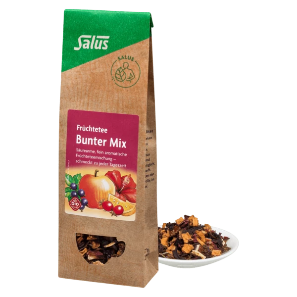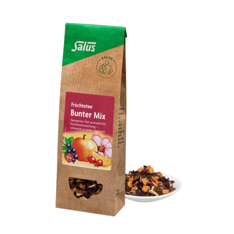Der Salus Bunter Mix Früchtetee Bio bietet ein säurearmes, fruchtiges Teevergnügen, das Dich durch den Tag begleitet – mild, erfrischend und köstlich.