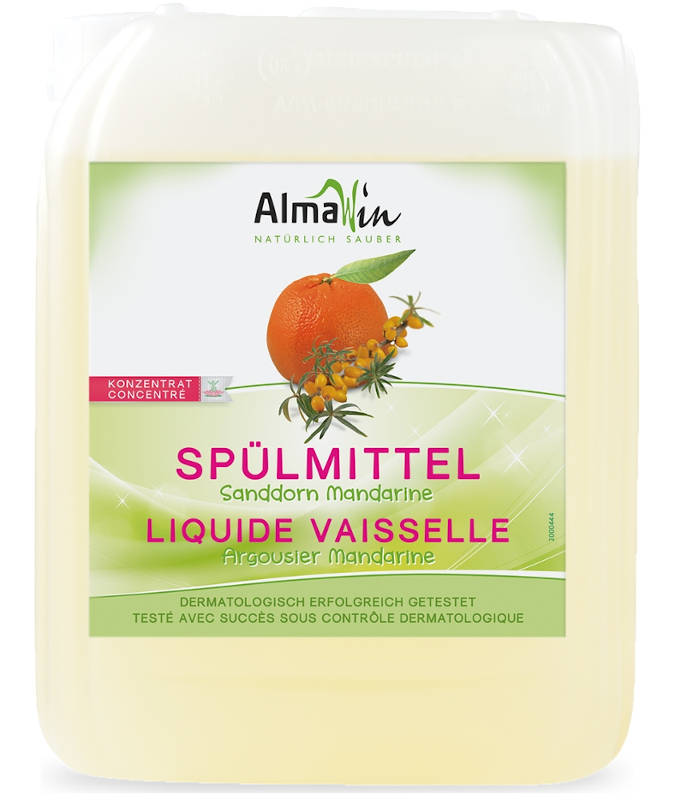Entdecken Sie die natürliche Reinigungskraft von AlmaWin Spülmittel mit Sanddorn Mandarine Duft – für strahlend sauberes Geschirr und einen frischen Duft in Ihrer Küche!