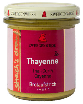 Entdecke den intensiven und herzhaft würzigen Geschmack der Zwergenwiese Streich’s drauf Thayenne. Dieses biologische Aufstrich-Highlight bringt Schwung auf Dein Brot und sorgt für eine leckere, vegane Alternative voller natürlicher Zutaten.
