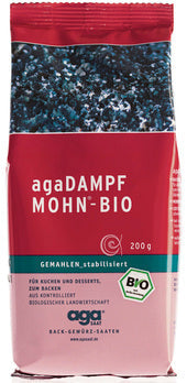 Der agaDAMPFMOHN® BIO besteht zu 100 % aus feingemahlenem Blaumohn. Durch die schonende Stabilisierung mit Sattdampf wird nicht nur das natürliche Aroma bewahrt, sondern auch eine verlängerte Mindesthaltbarkeit von mindestens 9 Monaten in der geschlossenen Verpackung (KLP) erreicht.