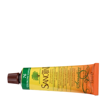 SANOTINT Sensitive 76 Goldblond Kupfer kombiniert die sanfte Helligkeit von Goldblond mit warmen Kupfernuancen, die dem Haar eine lebendige, reichhaltige Farbe verleihen. Es ist ideal für alle, die einen intensiveren, warmen Blondton mit einem Hauch von Kupfer wünschen.