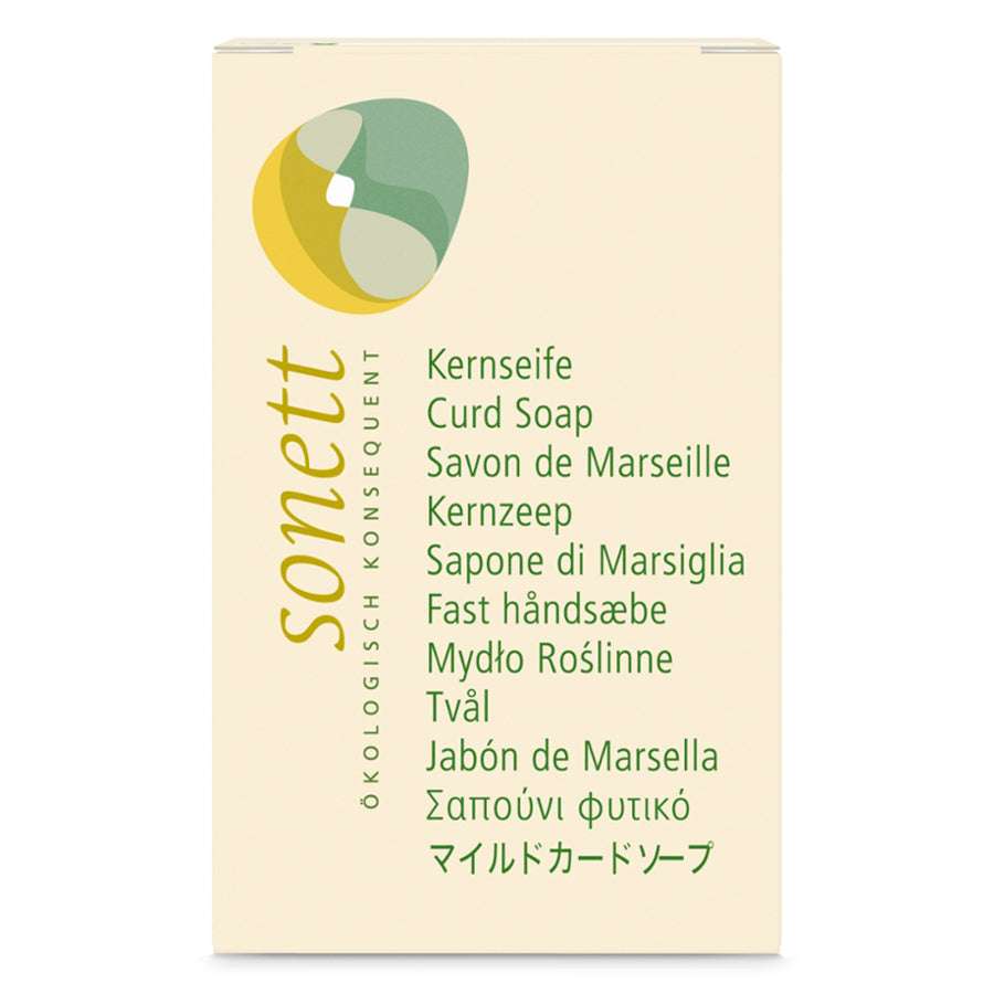 Sonett Kernseife ist hergestellt ohne Füllstoffe, Farbstoffe, Duftstoffe, optische Aufheller und vor allem ohne petrochemische Komplexbildner wie EDTA. Sie wird gut abgelagert, bevor sie in den Handel kommt; dies erhöht die Gebrauchsdauer. Die leicht gelbliche Färbung der Kernseife bei Lagerung über mehrere Jahre ist ein Zeichen der rein natürlichen Qualität dieses Produktes und beeinträchtigt in keiner Weise deren Qualität und Waschkraft.