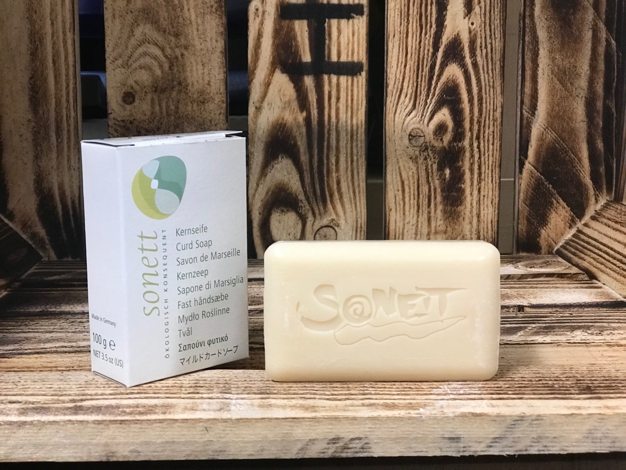 Sonett Kernseife ist hergestellt ohne Füllstoffe, Farbstoffe, Duftstoffe, optische Aufheller und vor allem ohne petrochemische Komplexbildner wie EDTA. Sie wird gut abgelagert, bevor sie in den Handel kommt; dies erhöht die Gebrauchsdauer. Die leicht gelbliche Färbung der Kernseife bei Lagerung über mehrere Jahre ist ein Zeichen der rein natürlichen Qualität dieses Produktes und beeinträchtigt in keiner Weise deren Qualität und Waschkraft.