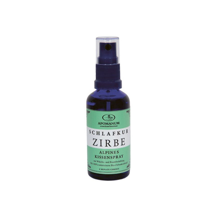 Bestelle jetzt das Apomanum Schlafkur Zirbe Bio-Kissenspray und erlebe die entspannende Kraft der Alpenkönigin für einen erholsamen Schlaf.