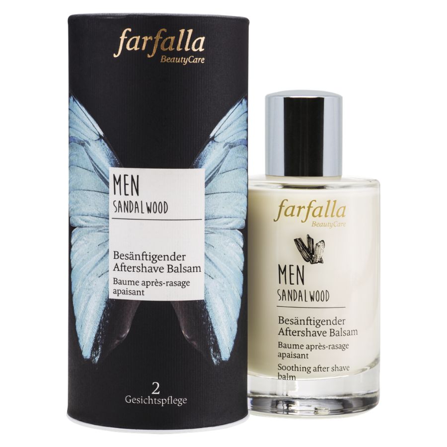 Beruhige deine Haut mit Farfalla men, Sandalwood, Besänftigender Aftershave Balsam Bio 100ml