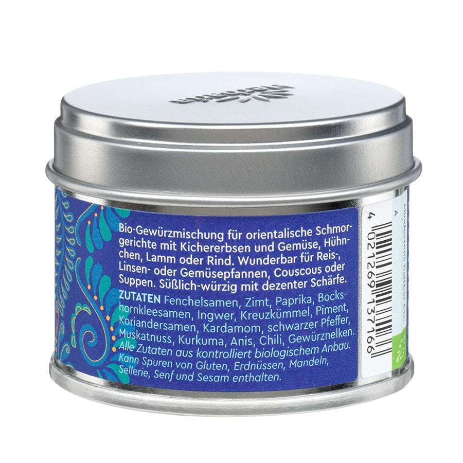Herbarias Premium-Bio-Gewürzmischung, Herbaria Ras el Hanout, ist die unangefochtene Königin der orientalischen Küche. In Zusammenarbeit mit Spitzenkoch Hans Gerlach haben wir diesen Klassiker neu interpretiert und aus 15 erlesenen Bio-Zutaten eine meisterhaft ausbalancierte Mischung geschaffen. Ras el Hanout verzaubert mit einem authentisch-orientalischen Genusserlebnis, geprägt von einem harmonischen Spiel aus Fenchel, Zimt, Piment, Kardamom und Kreuzkümmel, abgerundet durch dezente Schärfe von Ingwer, Pfeffer und Chili. Diese Gewürzmischung verleiht Gerichten wie orientalisch zubereitetem Lamm oder Hühnchen sowie Schmorgerichten ein rundes, süßlich-würziges Aroma. Darüber hinaus ist sie ideal für die Verfeinerung von Reis-, Linsen- oder Gemüsepfannen sowie von Couscous oder Suppen und eignet sich perfekt zur Zubereitung von Hummus oder orientalischen Dips.