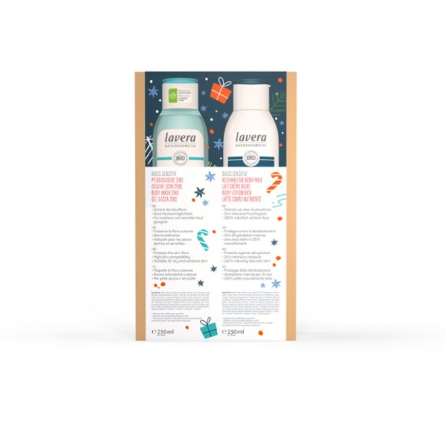 Erlebe das Gefühl purer Natur mit dem Lavera FROM NATURE WITH LOVE Geschenkset. Dieses festliche Set enthält das basis sensitiv Duschgel 2in1 und die basis sensitiv Body Milk Reichhaltig – zwei Pflegelieblinge, die deine Haut und dein Haar sanft reinigen und intensiv mit Feuchtigkeit versorgen. Verpackt in einer ansprechenden, weihnachtlichen Geschenkbox, ist dieses Set die perfekte Wahl für dich selbst oder als Geschenk für jemanden, der natürliche Pflege schätzt.