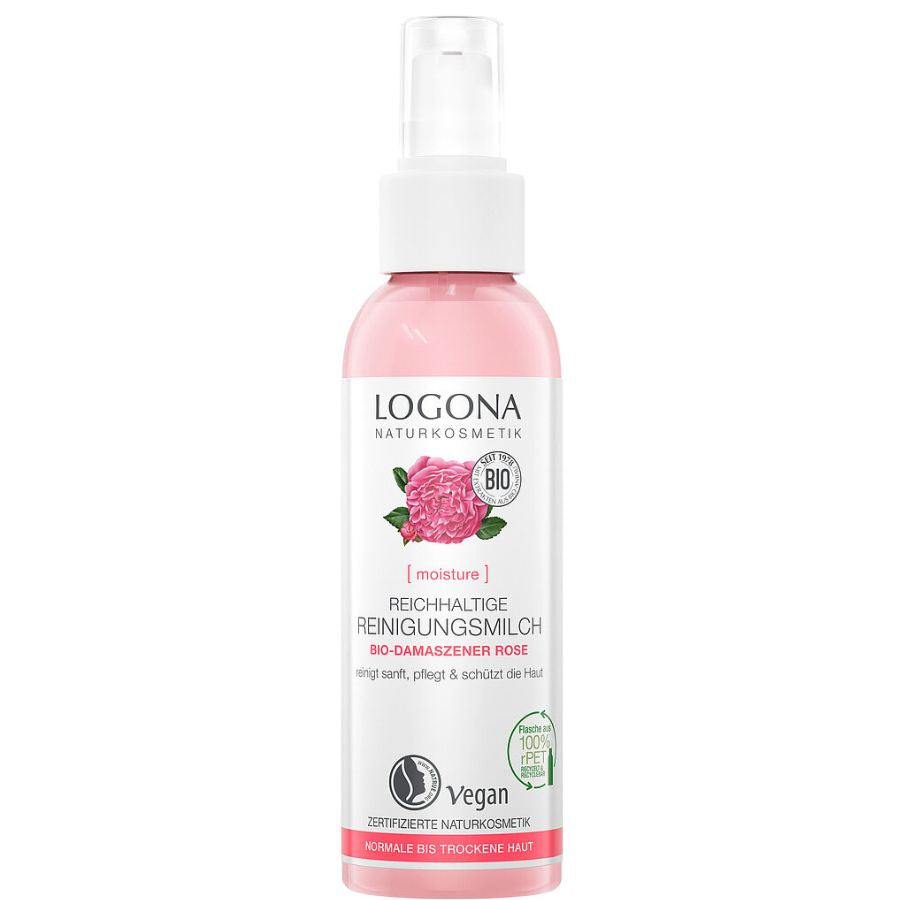 Unsere Logona Reichhaltige Reinigungsmilch reinigt effektiv, ohne auszutrocknen, und ist dabei besonders sanft zur Haut. Die wertvolle, vegane Formulierung mit rein natürlichen Extrakten aus der Bio-Damaszener Rose schützt den Fett- und Feuchtigkeitshaushalt der Haut. Verwöhnt mit einem zarten, rein natürlichen Rosenduft.